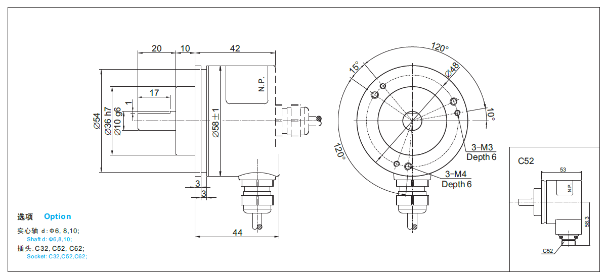 增 量型實(shí)心軸編碼器 軸徑d Shaft diameter : 6,8,10 出線方式 Cable connection E = 電纜后出 Cable axial G = 電纜側(cè)出 Cable radial 零位信號(hào) Z signal M = Z 信號(hào)寬度為1T 0.5M = Z 信號(hào)寬度為0